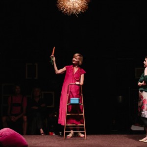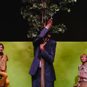 Mais Rebekka Kricheldorf ne contente pas d’utiliser les codes du boulevard pour déverser sa petite ironie sur notre monde. C’est le théâtre en lui-même, en tant qu’événement collectif, dont elle s’empare. Extase et Quotidien est en effet une machine bien huilée – en tout cas dans un premier temps. Une forme « d’extase collective » se produit durant la première partie, le public étant confronté à ce qu’il connaît de la médiocrité des personnages égoïstes et névrosés dans lesquels chacun ne peut que trop se reconnaître (rire de ses propres névroses est d’ailleurs extrêmement jouissif). Peu à peu cependant, et après avoir longtemps déroulé sa mécanique implacable, il me semble que la pièce se met à subir un effet de « patinage », comme si la drôlerie des situations, la brillance et l’irrévérence des dialogues ne produisaient plus l’effet escompté.
