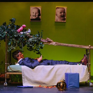 Cela correspond au moment où, dans Extase et Quotidien, le jeune quadragénaire Janne, qui s’accroche désespérément à son enfance par peur de souffrir depuis le début de la pièce, va enfin parvenir à devenir adulte. Mais ce sera au prix du sacrifice de son monde intérieur, auquel il va totalement renoncer pour se réfugier dans une normalité décérébrée. Nul doute que Rebekka Kricheldorf ne croit pas à la valeur de cette mutation, qui ne consiste pour Janne qu’à embrasser davantage la société de consommation en s’achetant des meubles préfabriqués et en réservant des vols « low cost » sur Internet.