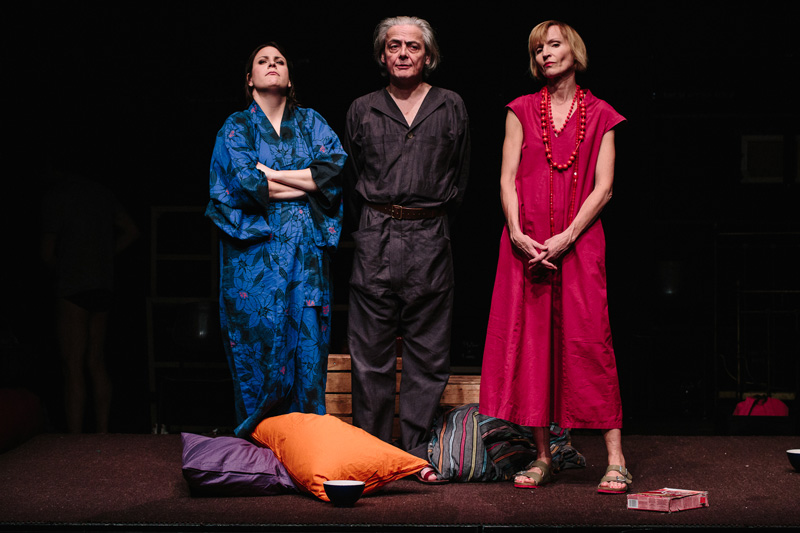 Le regard porté par Rebekka Kricheldorf est beaucoup plus acide. Dans Villa Dolorosa, c’est la possibilité même de produire un discours sur le monde, ou sur sa propre vie, qui semble avoir été abandonnée. Dans la dernière scène, d’une ironie extrême, les trois sœurs se parodient elles-mêmes, citant les dialogues qu’elles ont répétés tout au long de la pièce, comme des leitmotive. Rien ne semble plus avoir de sens. Ce qui devait nous servir à construire une pensée, et donc une relation au monde, cet outil indispensable – le langage – semble lui-même caduque : « À l’occasion de mon anniversaire, j’ai saisi l’opportunité pour réfléchir un peu sur ma vie, ironise une dernière fois Irina, et j’en suis arrivée au résultat suivant ». Et lorsque ses sœurs, pour toute réponse, poussent un gémissement ennuyé, Irina conclut : « Bon ben, alors, non ».
