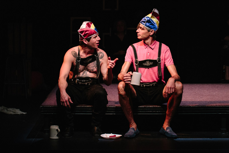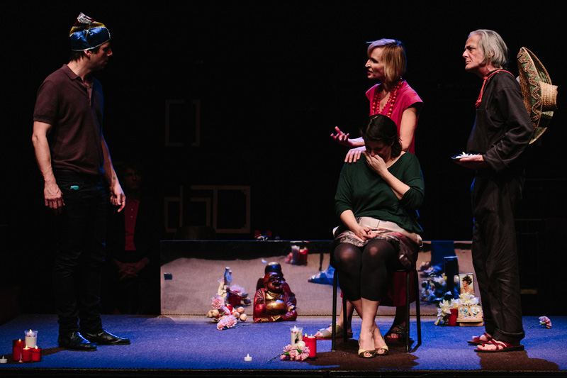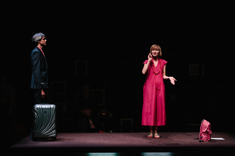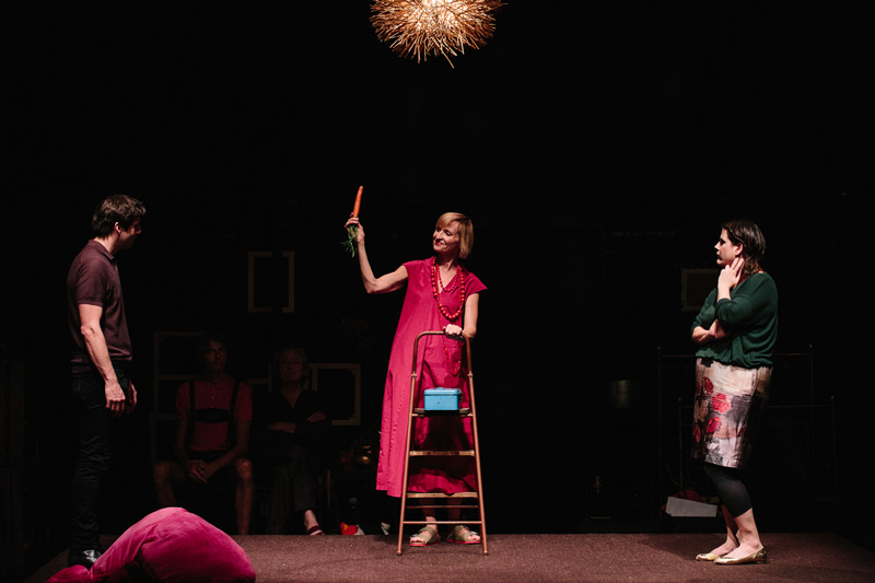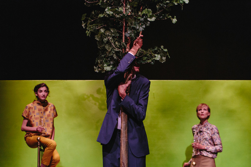 Mais Rebekka Kricheldorf ne contente pas d’utiliser les codes du boulevard pour déverser sa petite ironie sur notre monde. C’est le théâtre en lui-même, en tant qu’événement collectif, dont elle s’empare. Extase et Quotidien est en effet une machine bien huilée – en tout cas dans un premier temps. Une forme « d’extase collective » se produit durant la première partie, le public étant confronté à ce qu’il connaît de la médiocrité des personnages égoïstes et névrosés dans lesquels chacun ne peut que trop se reconnaître (rire de ses propres névroses est d’ailleurs extrêmement jouissif). Peu à peu cependant, et après avoir longtemps déroulé sa mécanique implacable, il me semble que la pièce se met à subir un effet de « patinage », comme si la drôlerie des situations, la brillance et l’irrévérence des dialogues ne produisaient plus l’effet escompté.