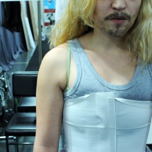 Comment dès lors rendre compte théâtralement de cette « chimère » du MOI soi-disant défini et cohérent ? Il m’a semblé que le travesti pourrait être une bonne piste. Ce qui est « magique » avec le travesti, c’est que l’on y voit à la fois le sexe originel et l’autre sexe, celui qui est joué. Dépositaire de deux identités sexuelles, le travesti a au moins deux visages superposés. Le texte de Grichkovets, de son côté, est constitué d’une succession d’anecdotes, étroitement tissées entre elles. Autant de facettes d’une même personnalité, mais qui au final sont tellement nombreuses qu’inévitablement on se pose la question : et si toutes ces anecdotes, ces tentatives de s’approprier le monde et d’en rendre compte afin de le ressentir et de dire qu’on existe ne constitueraient pas le plus terrible des aveux ? Celui qui consisterait à dire que je ne peux pas me définir sans mentir, sans revêtir une fausse identité, que JE n’est pas MOI ?