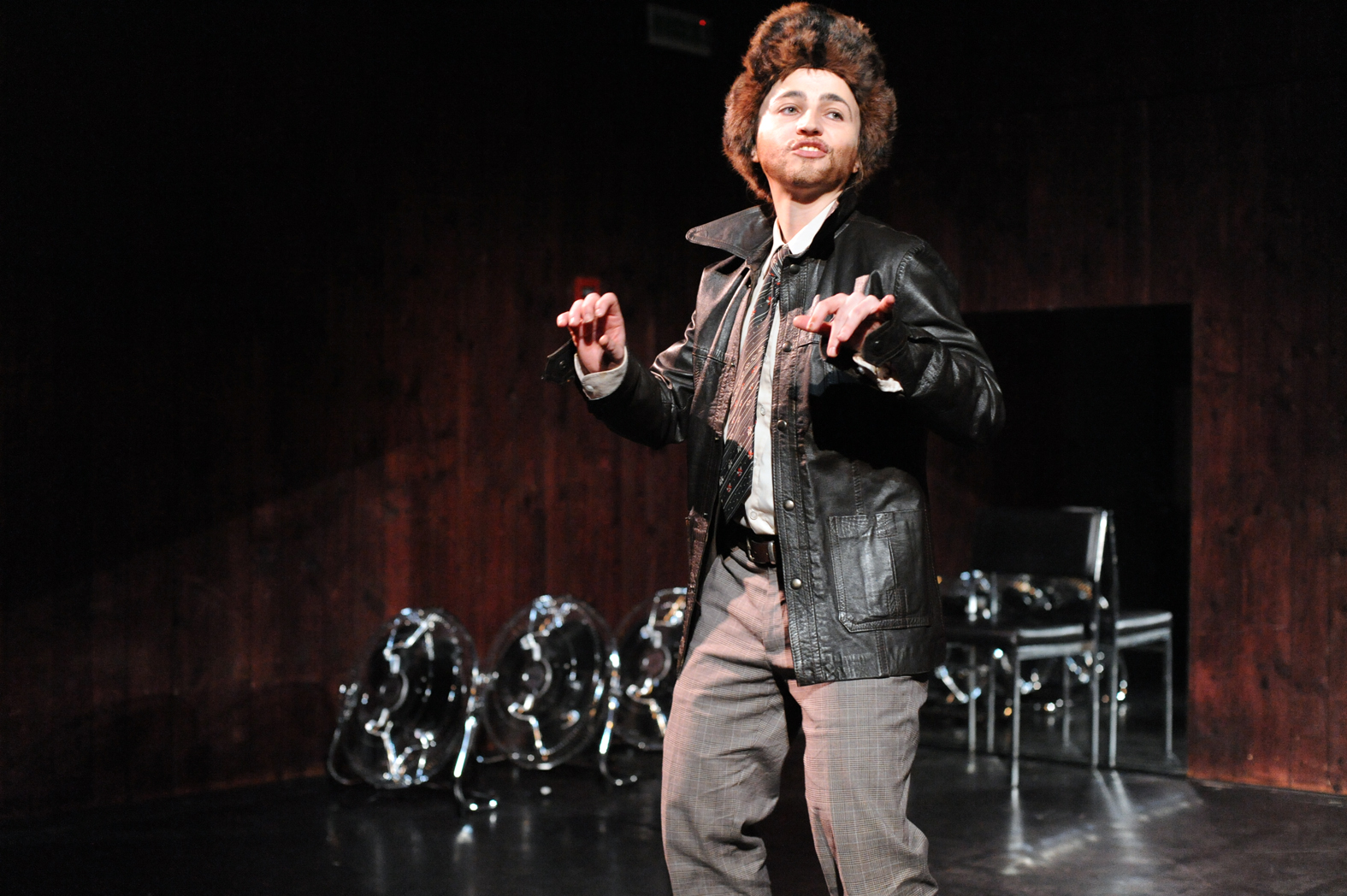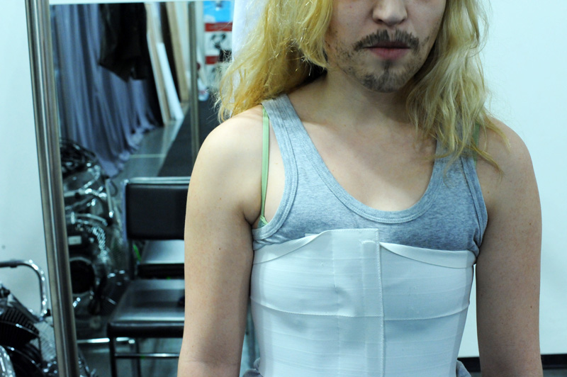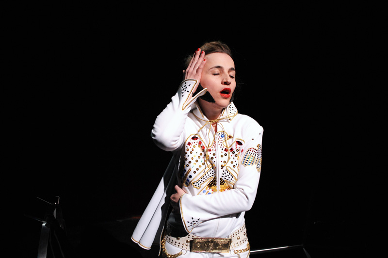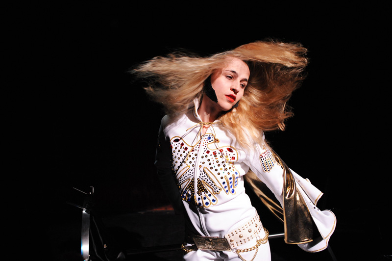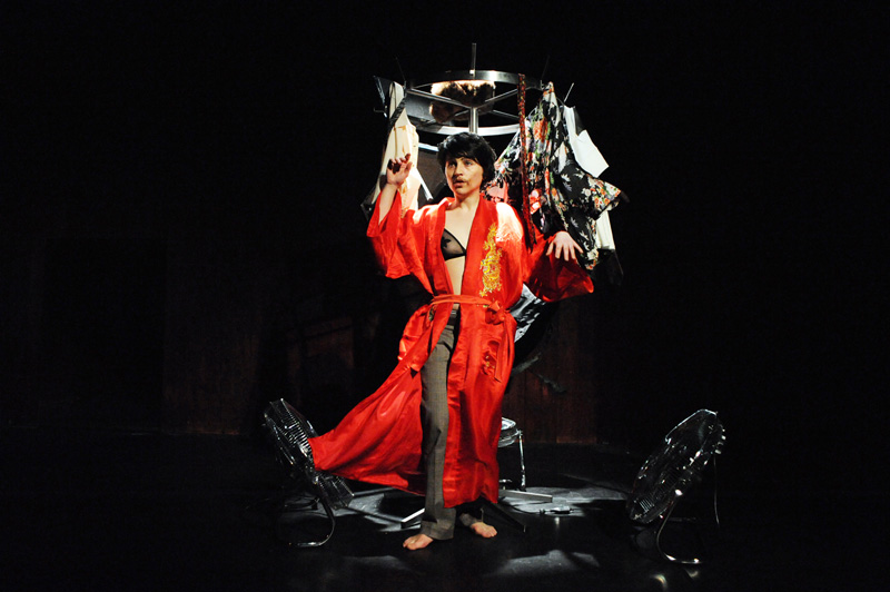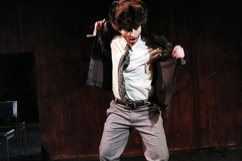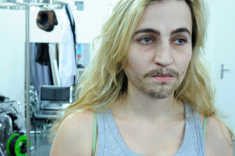 Comment dès lors rendre compte théâtralement de cette « chimère » du MOI soi-disant défini et cohérent ? Il m’a semblé que le travesti pourrait être une bonne piste. Ce qui est « magique » avec le travesti, c’est que l’on y voit à la fois le sexe originel et l’autre sexe, celui qui est joué. Dépositaire de deux identités sexuelles, le travesti a au moins deux visages superposés. Le texte de Grichkovets, de son côté, est constitué d’une succession d’anecdotes, étroitement tissées entre elles. Autant de facettes d’une même personnalité, mais qui au final sont tellement nombreuses qu’inévitablement on se pose la question : et si toutes ces anecdotes, ces tentatives de s’approprier le monde et d’en rendre compte afin de le ressentir et de dire qu’on existe ne constitueraient pas le plus terrible des aveux ? Celui qui consisterait à dire que je ne peux pas me définir sans mentir, sans revêtir une fausse identité, que JE n’est pas MOI ?