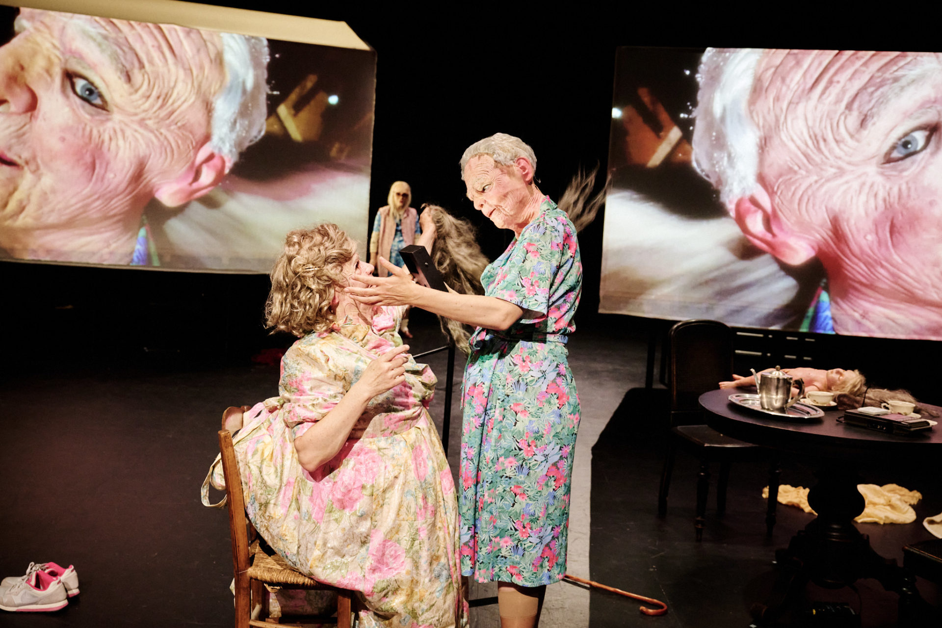À travers ces vieillardes et ces vieillards frémissants, nous célébrons donc cette porosité avec nos ancêtres et nos fantômes, restés parfois coincés ici ou là dans nos vies depuis quelques générations, en attendant que quelque chose libère la charge qu’ils contiennent — en les représentant au théâtre par exemple ! Car comme l’écrit la philosophe Vinciane Despret, « les morts ne le sont vraiment que si on cesse de s’entretenir avec eux ». C’est donc cet « entretien » (au double sens du mot) qui est devenu le sujet de L’âge de frémir, et les chamans que nous représentons sous les traits de ces vieillardes et de ces vieillards deviennent des interprètes qui rendent visibles ce que nous n’avons pas (ou plus) l’habitude de voir, et qui font exploser l’agentivité de notre mémoire, de notre enfance, de notre origine – ou de notre destin.