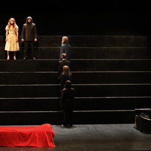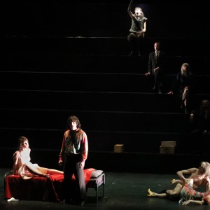 Macbeth lui aussi a un problème avec l’enfantement. Il ne veut – ou ne peut – procréer. Avec Lady Macbeth, il préfère rester en fusion : une fusion adolescente, foutraque, un amour irraisonné, informe. On sait qu’elle a engendré, au moins une fois : elle fait allusion à la douceur ressentie en allaitant son bébé. Mais de bébés, plus traces. Morts en bas âge, peut-être. On ne sait comment. Le couple, lui, est toujours là. Peut-être encore plus soudé, brûlant. À tel point que l’on se demande si l’homme et la femme ont encore la faculté d’exister individuellement. N’est-elle qu’une face de lui-même ? Est-il autre chose que son propre revers à elle ? Avant la fin de la pièce, elle perd la raison, s’enferme dans ses hallucinations. Puis se jette en bas des falaises bordant le château d’Inverness. Se débarrasse d’elle-même.
