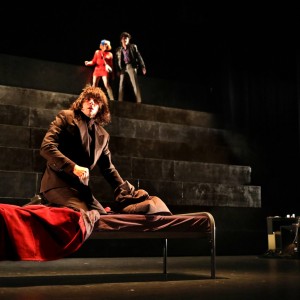 Ne parvenant pas à sortir du délire paranoïaque qu’il a lui-même provoqué et reclus au milieu de ses fantasmes, Macbeth fait appel au surnaturel et aux forces mystérieuses de l’artifice en usant du théâtre et de ses masques. C’est un enfant qui voudrait comprendre comment jouer avec le feu et il ne crée qu’un nouveau désordre. Guillaume Béguin fait de Macbeth un être perméable à ce qui l’entoure, débordé par son imagination, connecté au monde à travers une sensibilité exacerbée. Il en offre ainsi une version sans âge, une tragédie de l’être dans son rapport amoureux et sensuel à lui-même et à ce qui l’entoure, contenant sa propre destruction.