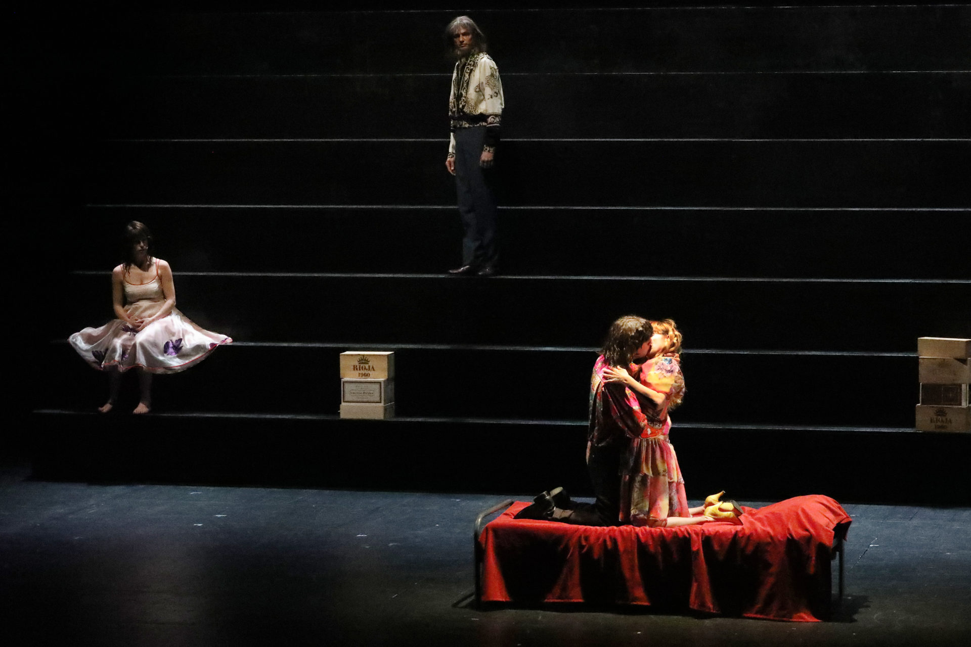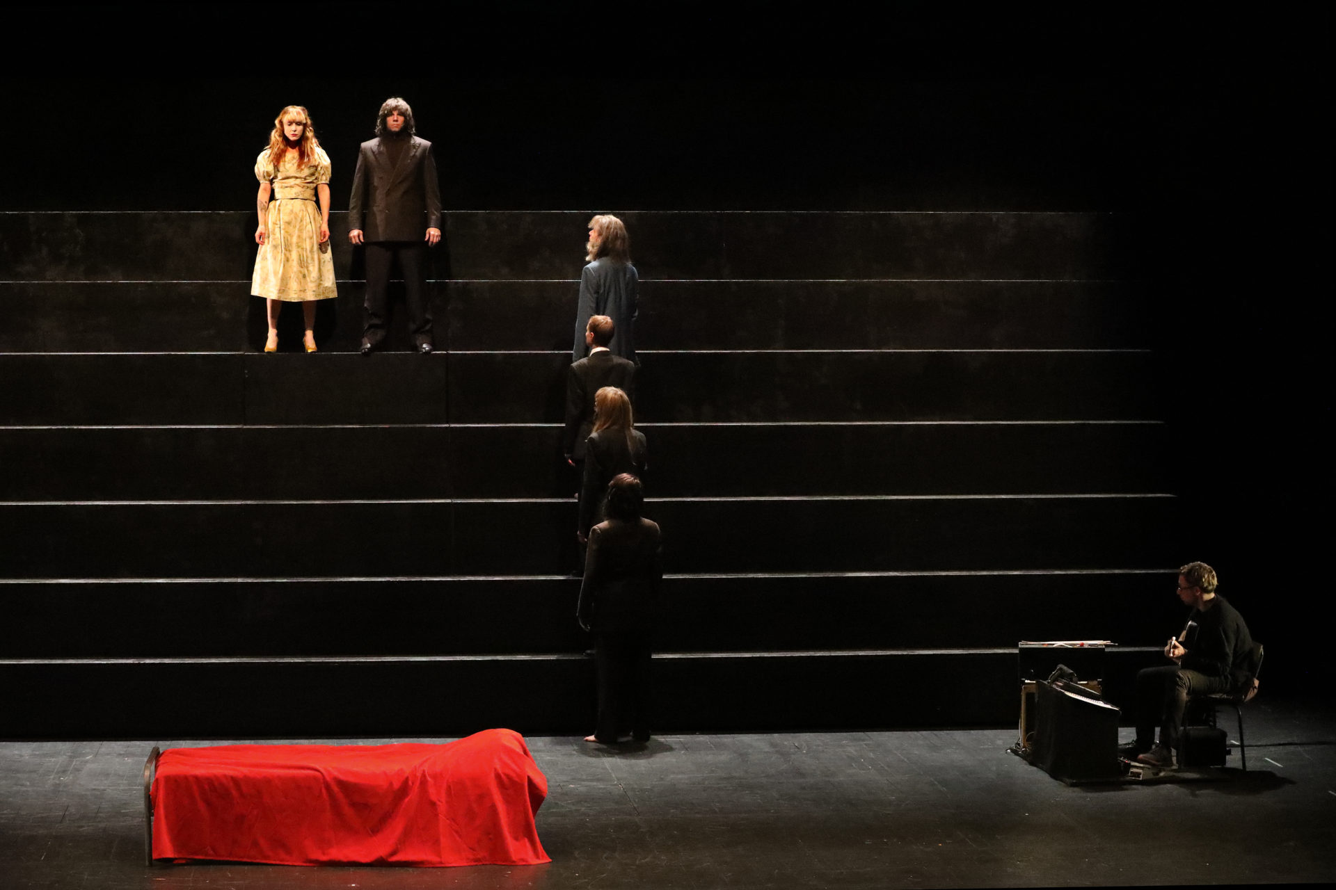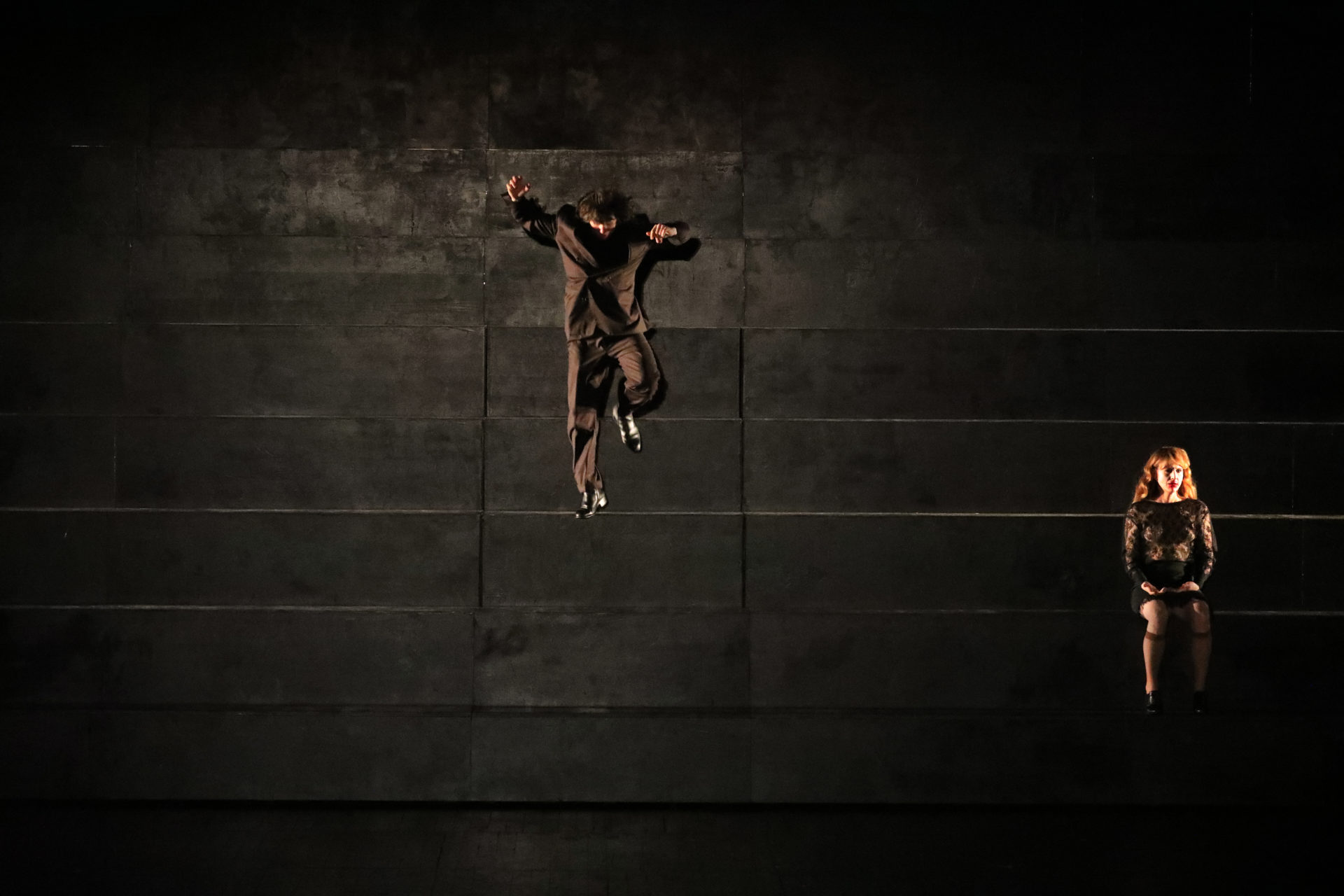Macbeth lui aussi a un problème avec l’enfantement. Il ne veut – ou ne peut – procréer. Avec Lady Macbeth, il préfère rester en fusion : une fusion adolescente, foutraque, un amour irraisonné, informe. On sait qu’elle a engendré, au moins une fois : elle fait allusion à la douceur ressentie en allaitant son bébé. Mais de bébés, plus traces. Morts en bas âge, peut-être. On ne sait comment. Le couple, lui, est toujours là. Peut-être encore plus soudé, brûlant. À tel point que l’on se demande si l’homme et la femme ont encore la faculté d’exister individuellement. N’est-elle qu’une face de lui-même ? Est-il autre chose que son propre revers à elle ? Avant la fin de la pièce, elle perd la raison, s’enferme dans ses hallucinations. Puis se jette en bas des falaises bordant le château d’Inverness. Se débarrasse d’elle-même.